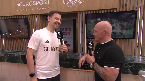 Timo Boll im Interview mit Eurosport-Reporter Fabian Hambüchen über...